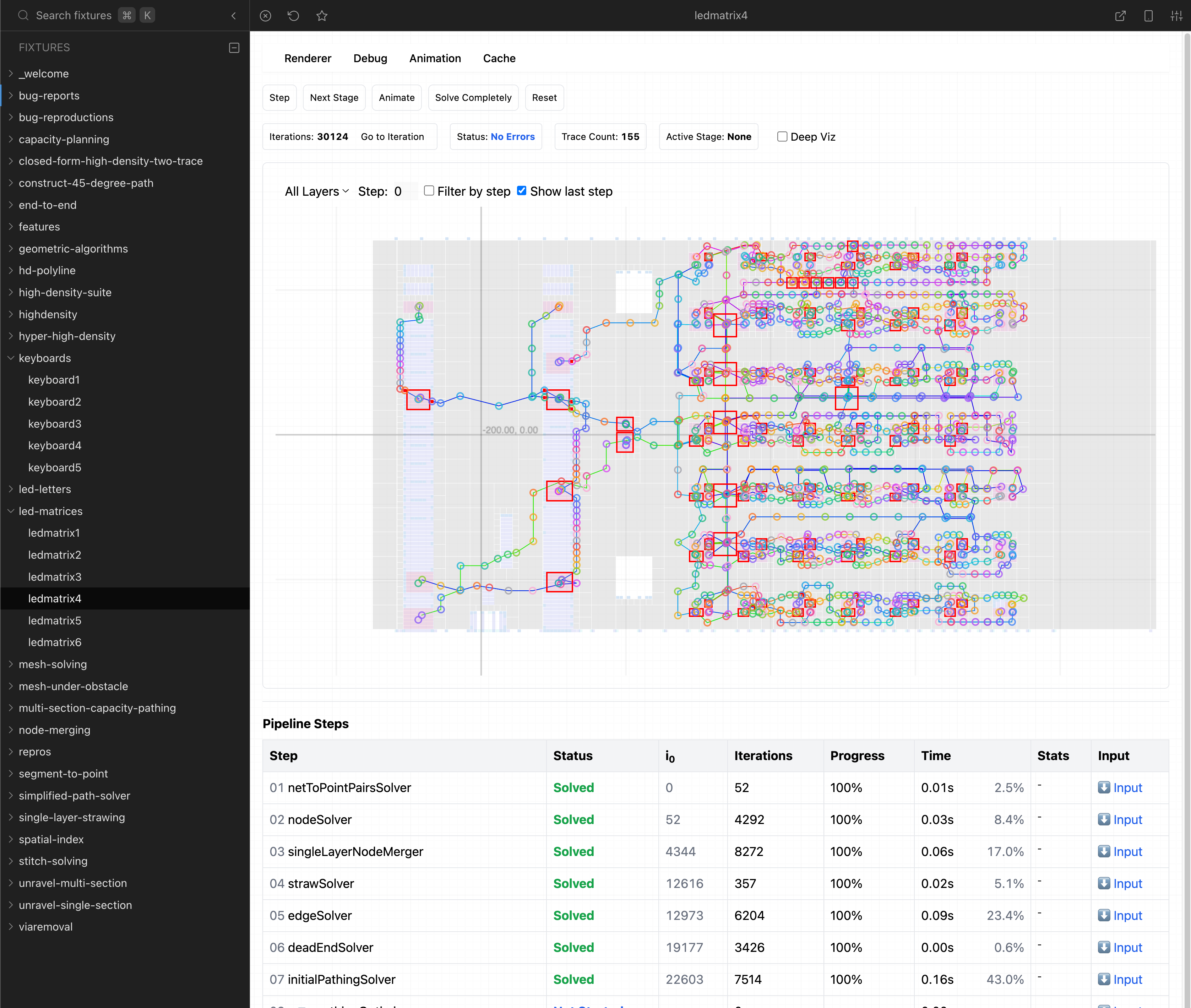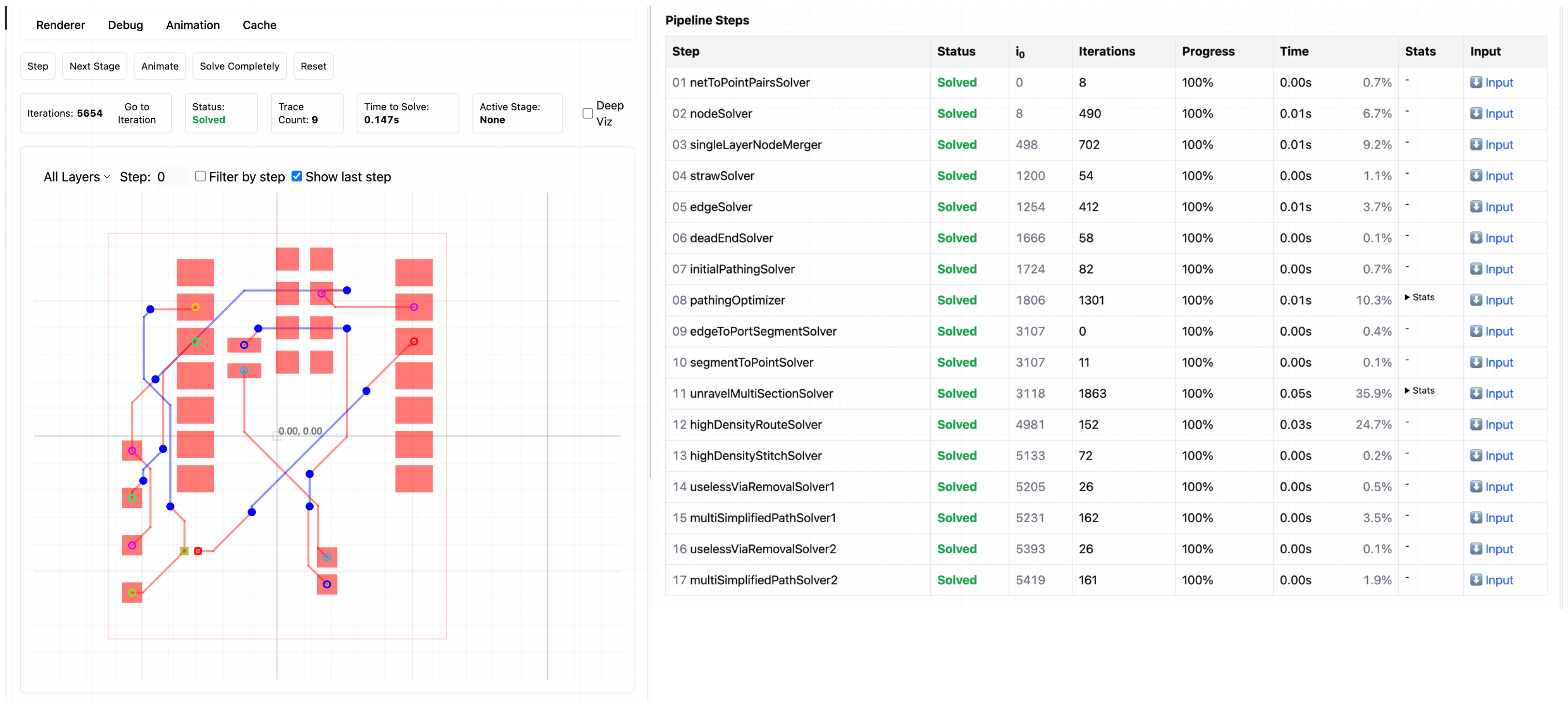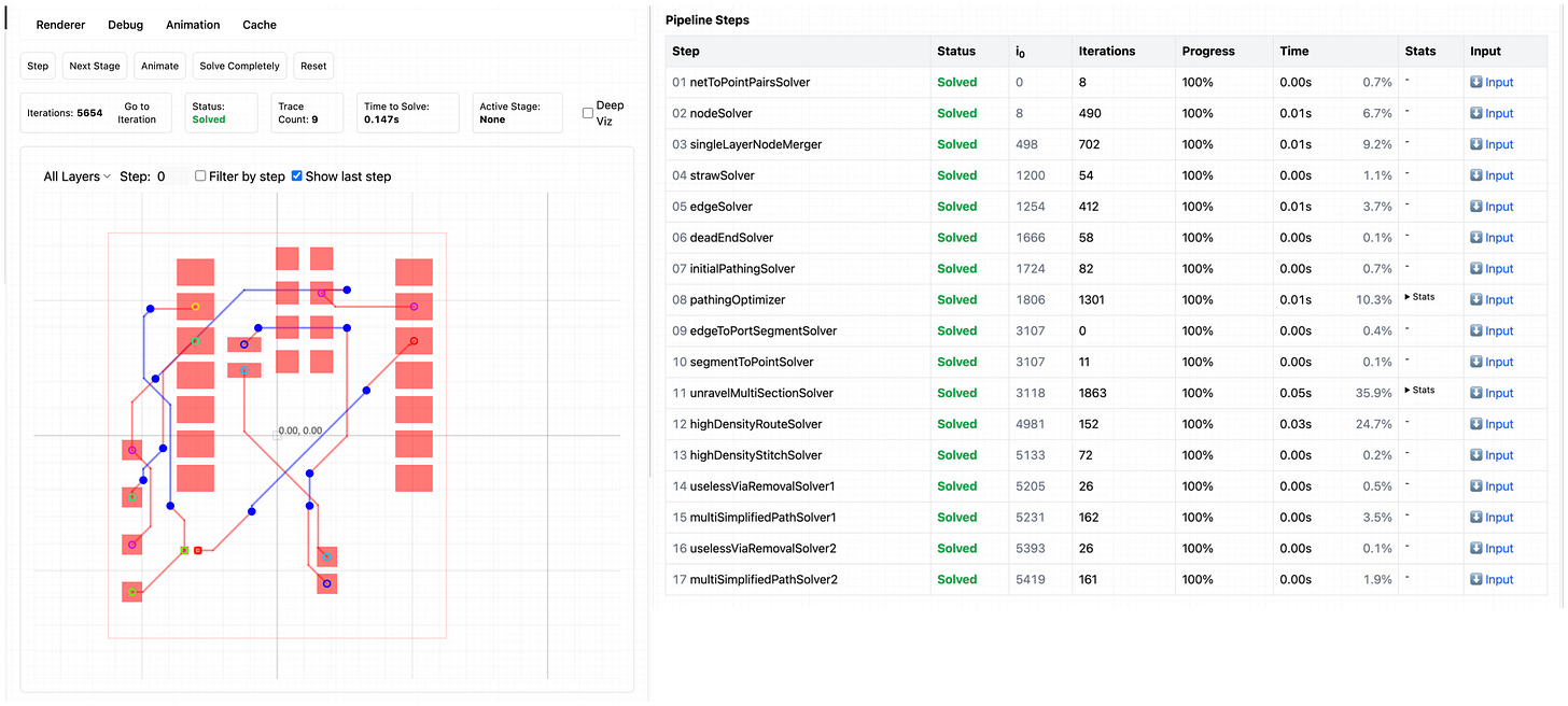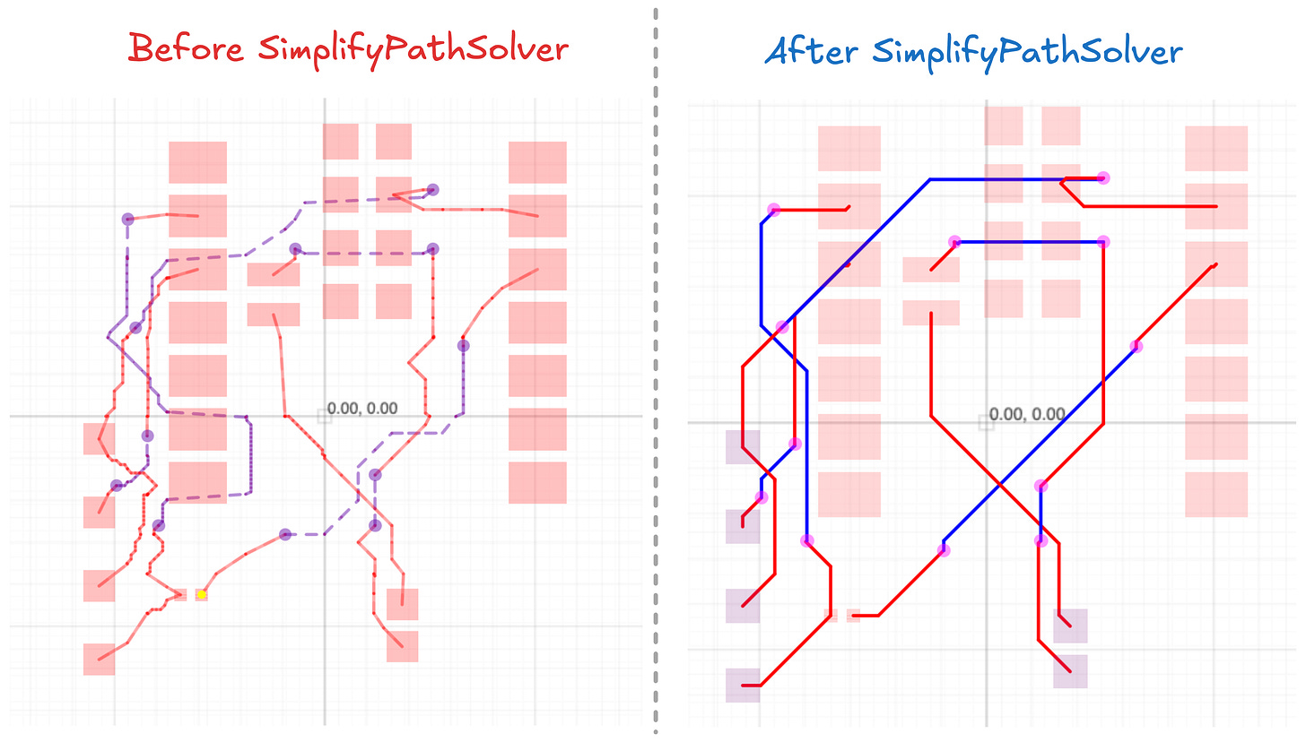 Approximate - Most non-trivial algorithms are hard to implement optimally on the first go. Build your algorithms to tolerate non-optimality, this often means introducing stages just to “improve” the output of prior stages. This is good! For our autorouter, we have stages that “straighten-out” our routes (shown below)