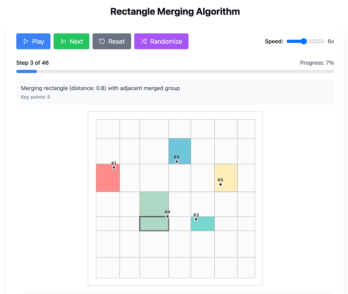 The web app for an algorithm usually sucks at first, only exposing the most basic operations: the visualization and the step function. Over time, you add additional debugging and visualizations to help with understanding. Here are three algorithms in different stages of development: